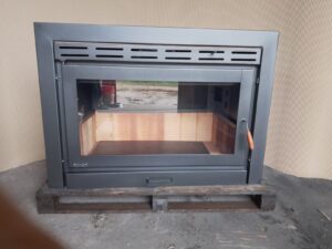 La estufa está construida en chapas de 5mm las que están en contacto con el fuego y 3mm las zonas de no contacto directo con el fuego interior recubierto en ladrillos refractario chapa cobertura estética de 1,2mm pintada con alta temperatura resistente a 600°